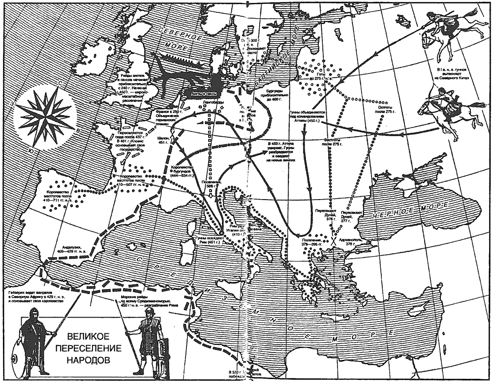Никто точно не знает, что послужило причиной грандиозной серии набегов и вторжений, которая без перерыва продолжалась в течение трехсот лет; они начались (как нам говорят) в 787Pг., когда три черных корабля вошли в залив Пул и дальше в порт города Уорхема. Оттуда вырвалась ужасная банда языческих воинов, которые разграбили мирный город, а затем уплыли туда, откуда пришли. Закончилось же все это в 1066Pг. на поле Сенлака, когда Вильгельм Завоеватель разбил войска саксонского короля Англии. Хотя период активных набегов и грабежей закончился более чем за сто лет до этого, в некотором смысле вторжение норманнов явилось самым захватывающим приключением эпохи викингов. Между этими двумя событиями викинги захватили и заняли Исландию, Шетландские и Оркнейские острова, восточное побережье Ирландии, Гебридские острова, остров Мэн и большую часть Шотландии и Северной Англии. Франция снова и снова подвергалась нападениям, пока наконец Ролло не завоевал и не заселил Нормандию. Из Швеции викинги проникли далеко в глубь России и основали много великих городов, таких, как, например, Киев. Они совершали набеги на всей территории Средиземноморья, как это делали их предки-вандалы, и на столетия стали избалованными